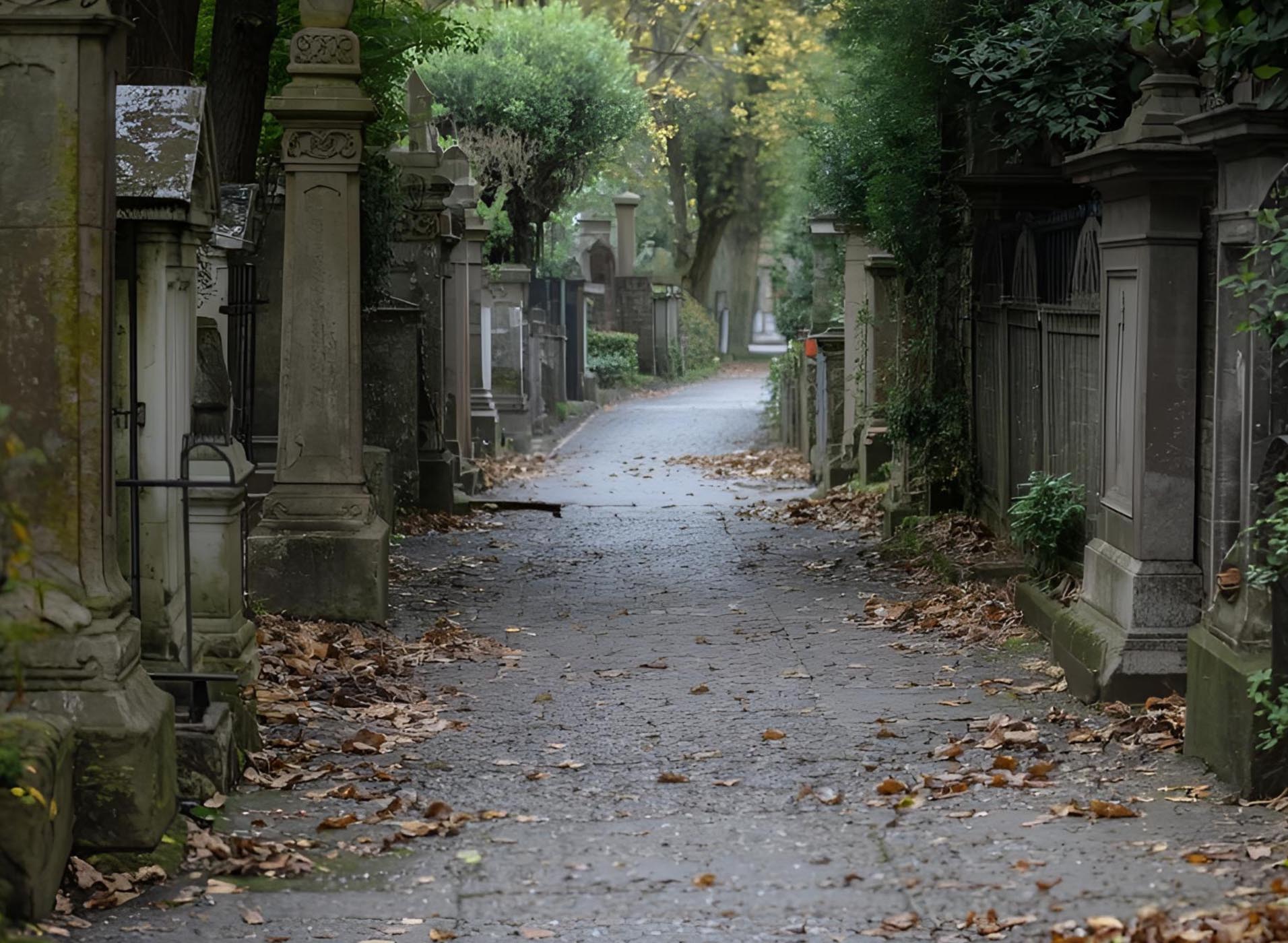 - Passaggi stretti e curve tra lapidi, viali e aiuole;